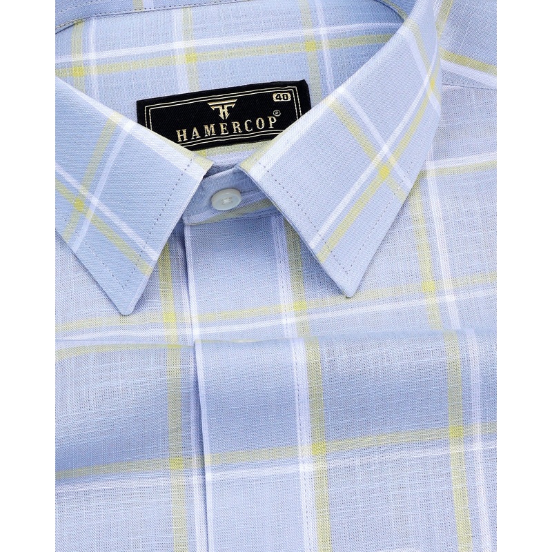 Wrefal Silver Blue Check Linen Cotton Formal Shirt