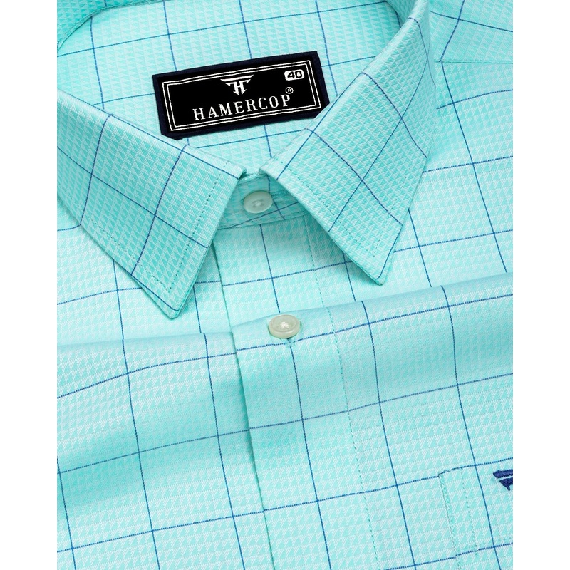 Wular Aqua Green With Blue Dobby Check Premium Giza Shirt