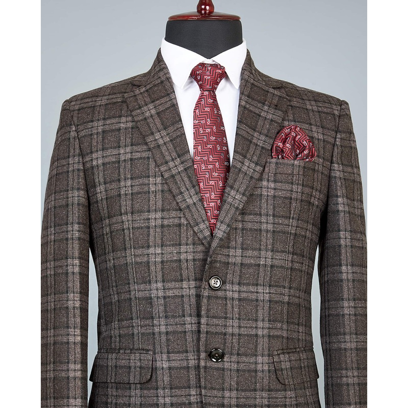 Zordic Brown Checkered Wool Rich Single Breasted Blazer