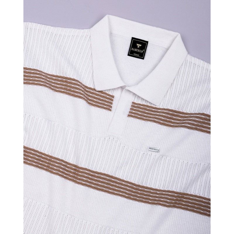 Zupiter White With Cream Knitted Cotton Polo T-Shirt