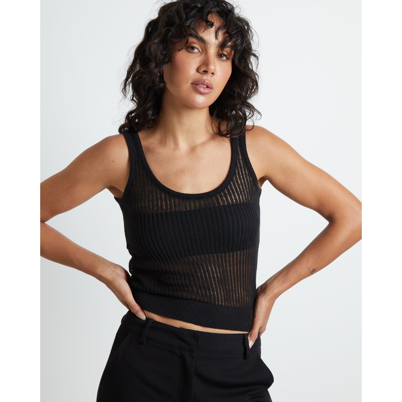 Zia Fine Knit Tank Top in Black BLK