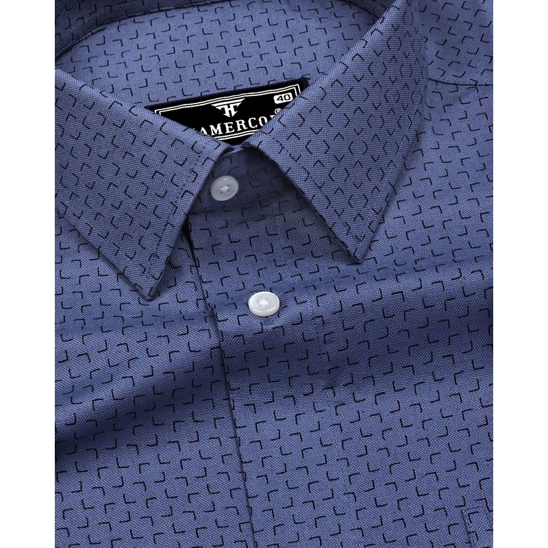 Berry Blue With SkyBlue Printed Cotton Shirt