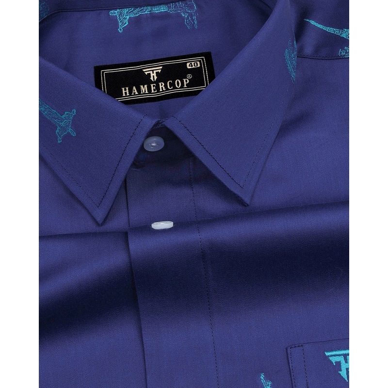 Blue Wonder Jacquard Printed Premium Gizza Cotton Shirt