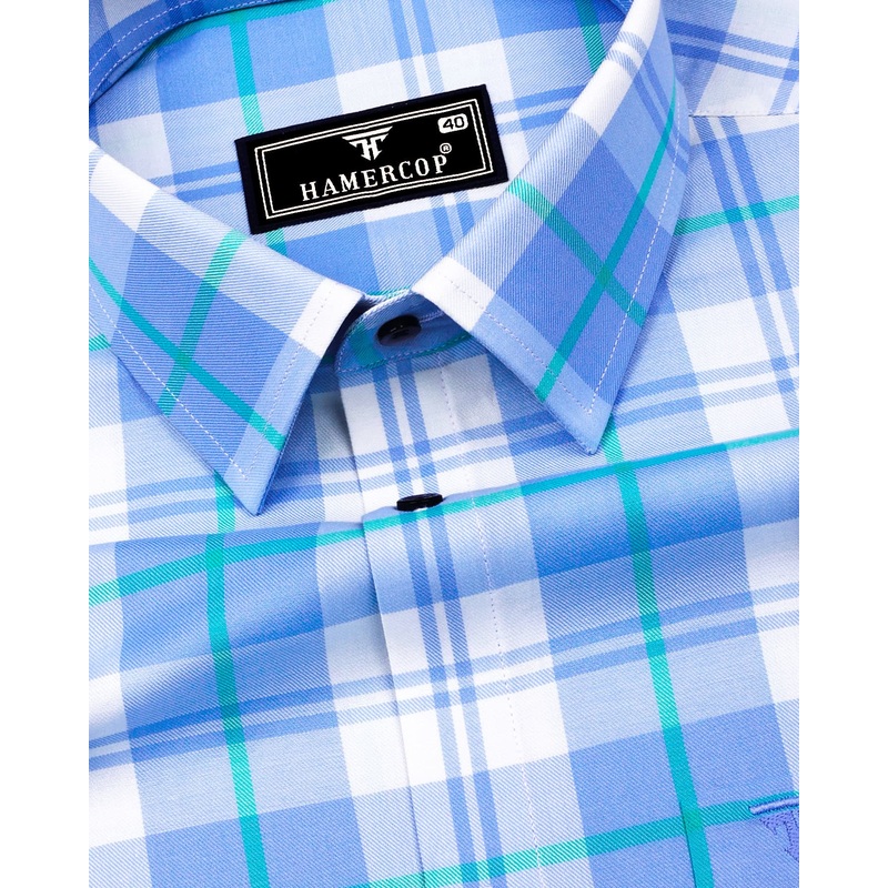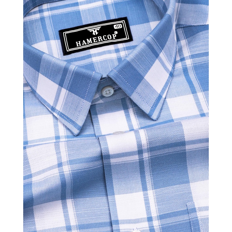 Blois Blue With White Twill Check Premium Cotton Shirt