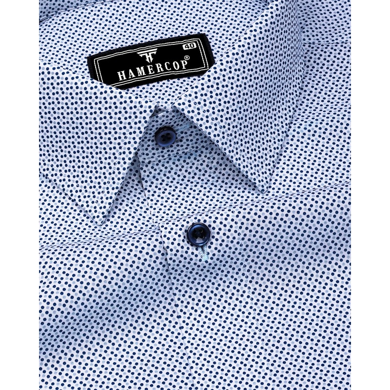 Blue With Gray Polka Dot Printed White Cotton Shirt