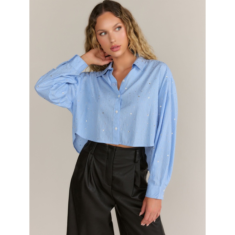 Blue B Long Sleeve Crystal Embellished Hi-Lo Shirt – Brands We Love BLUE – BLUE