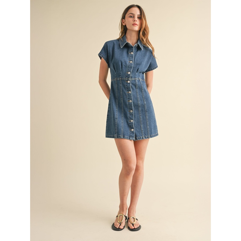 Bri Button Down Denim A Line Dress BLUE – MEDIUM BLUE WASH