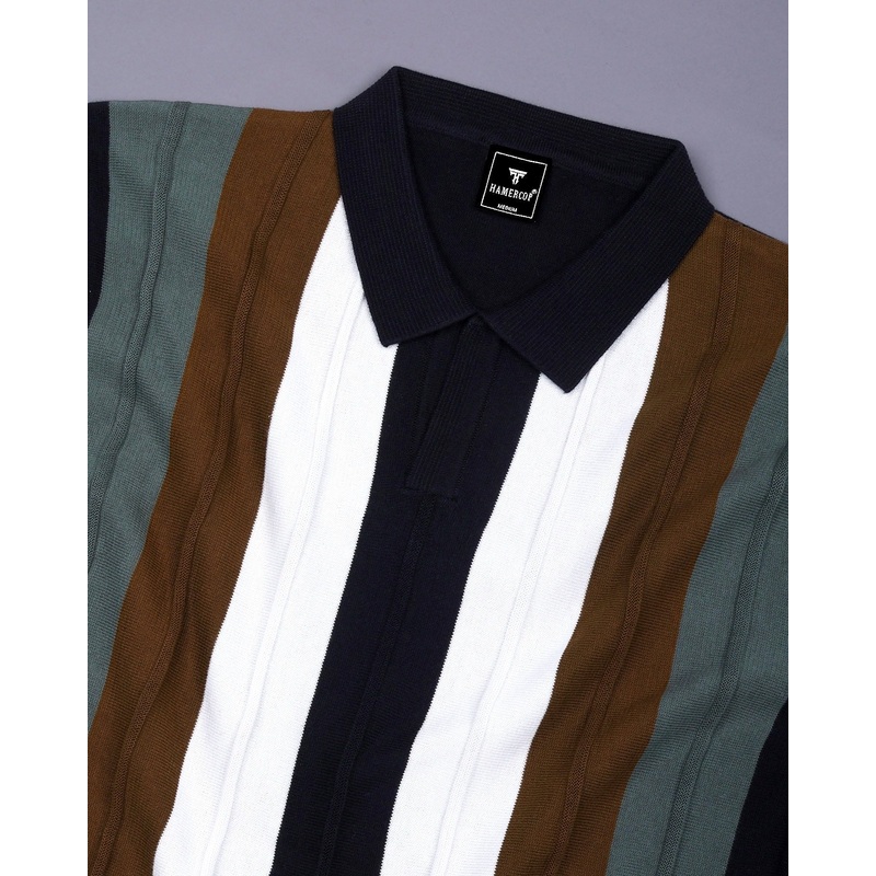 Brown With Black Candy Stripe Knitted Cotton Polo T-Shirt