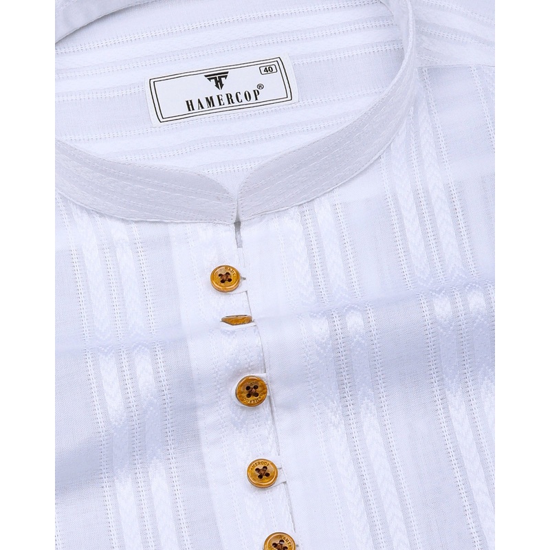 Bright White Self Stripe Dobby Cotton Shirt Style Kurta