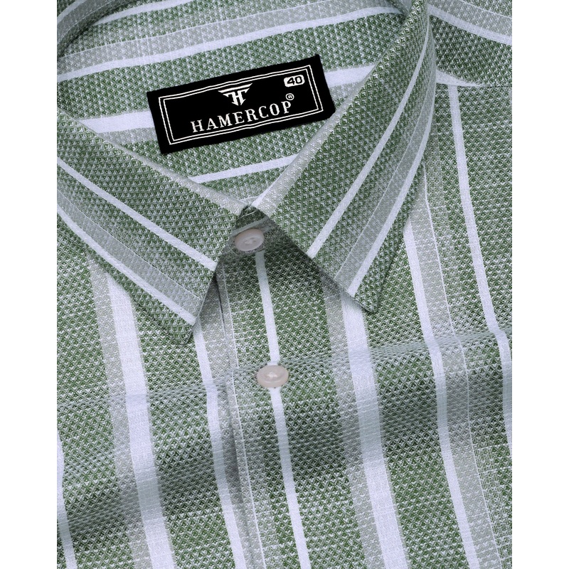 Broccoli Green With White Dobby Stripe Cotton Shirt