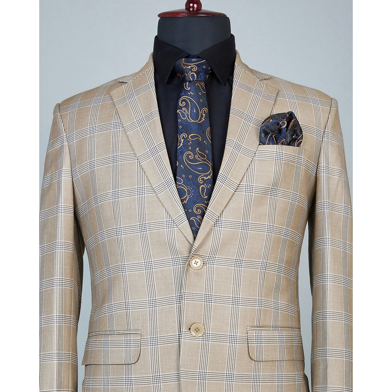 Brownish Grey Windowpane Check Single Breasted Blazer
