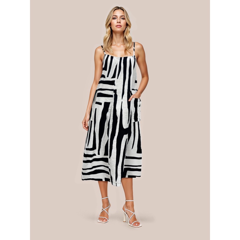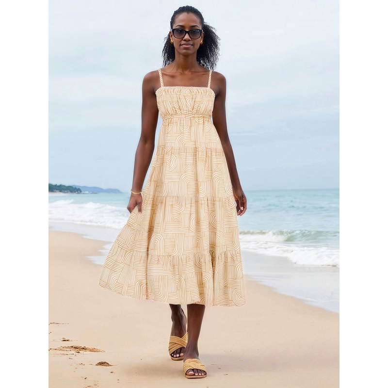 Abstract Print Midi Sun Dress NATURAL – KHAKI