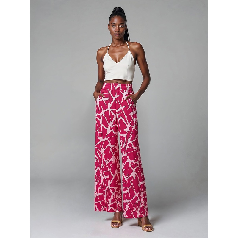 Abstract Print Wide Leg Pants BLACK – BLACK