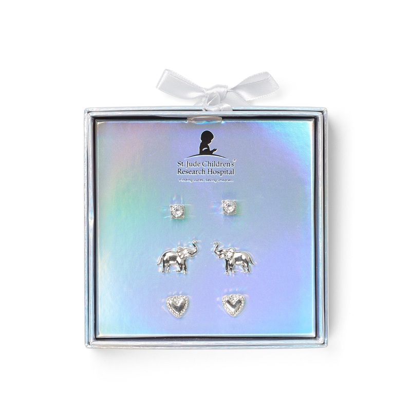 3-Piece Elephant & Heart Post Earring Set – St. Jude Collection GREY – SILVER