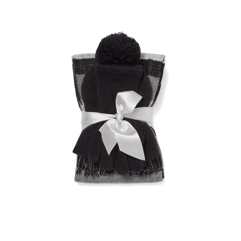 3-Piece Colorblock Scarf, Hat & Gloves Set BLACK – BLACK