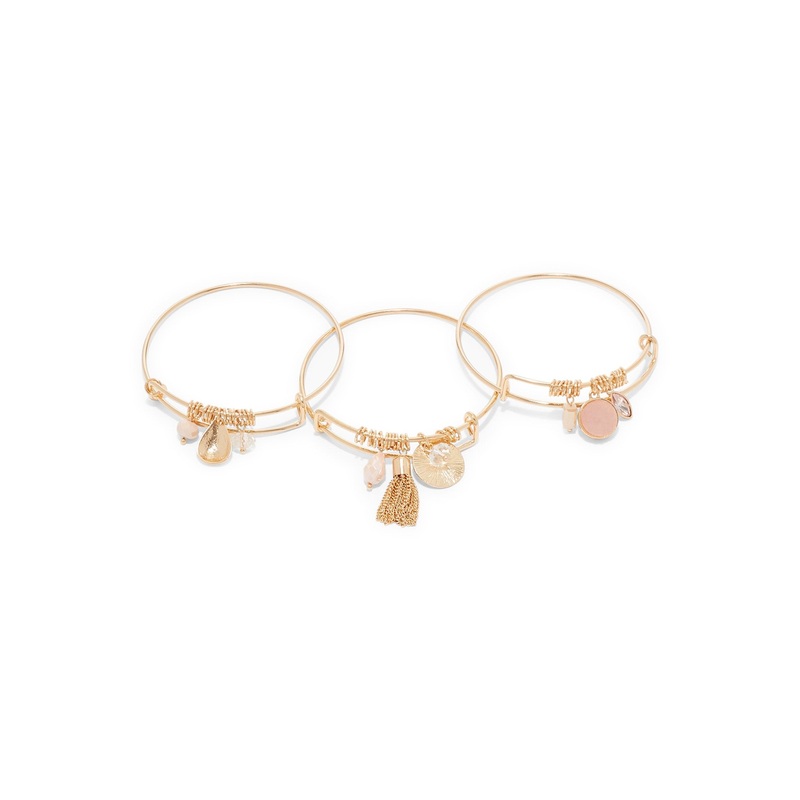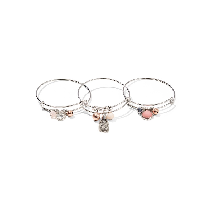 3-Piece Charm Bangle Bracelet Set PINK – ROSE CRYSTALS