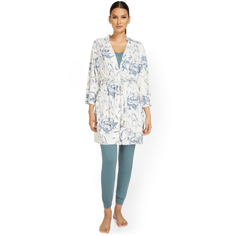 3-Piece Marble-Print Robe & Pajama Set GREY – GREY