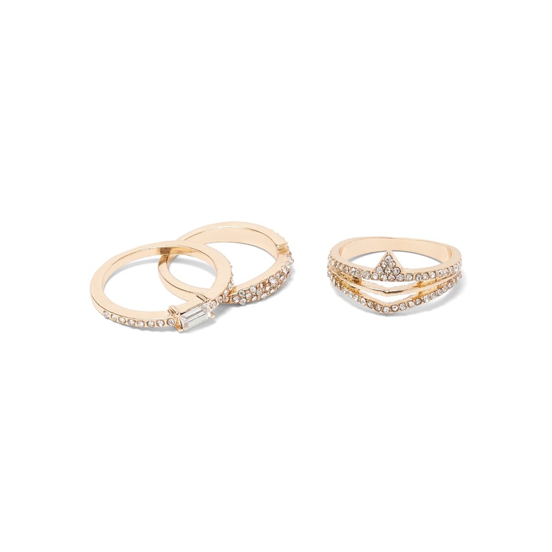 3-Piece Pave Goldtone Ring Set MULTICOLOR – STRIPES-MULTI