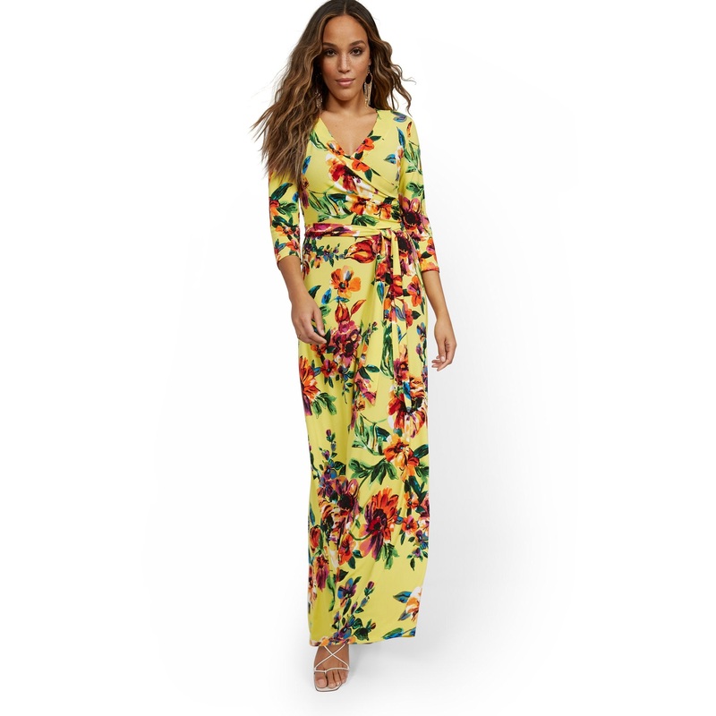 3/4-Sleeve Tie-Front Maxi Dress YELLOW – CHEERFUL YELLOW