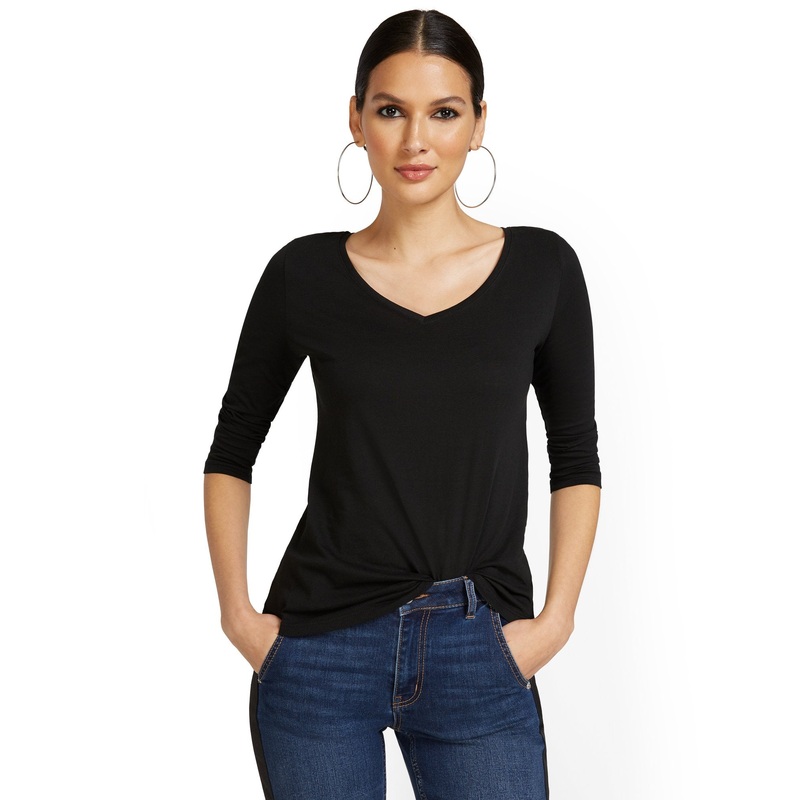 3/4-Sleeve Side-Tie Top – NY&C Style System BLACK – BLACK