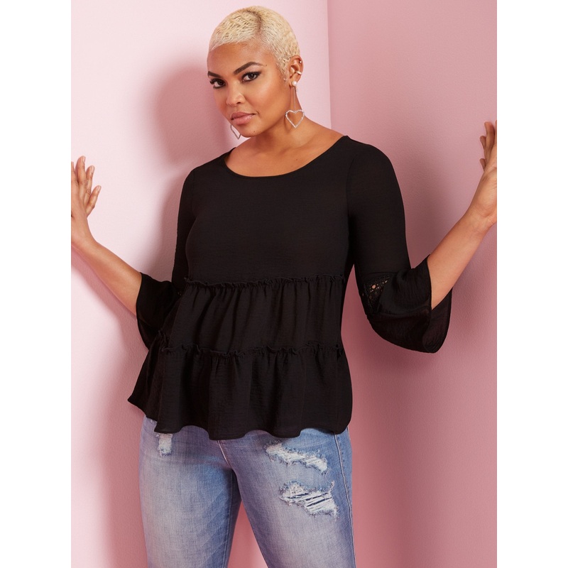 3/4-Sleeve Tiered Blouse BLACK – BLACK
