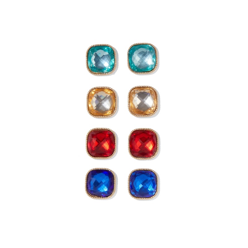 4-Piece Gemstone Stud Earring Set MULTICOLOR – MULTI COLOR