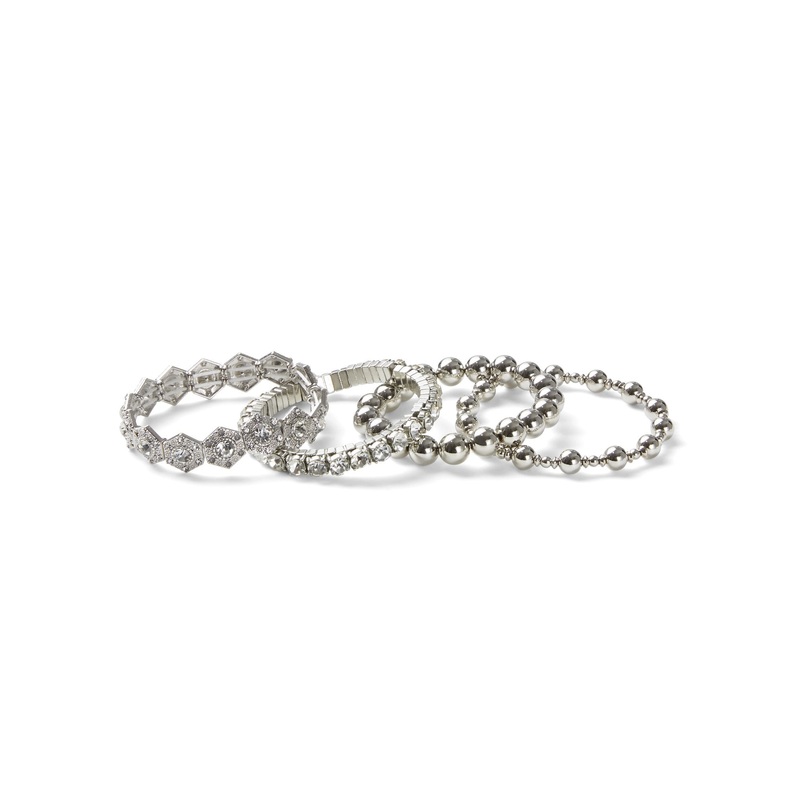 4-Piece Beaded Stretch Bracelet Set GREY – STRIPES-MULTI