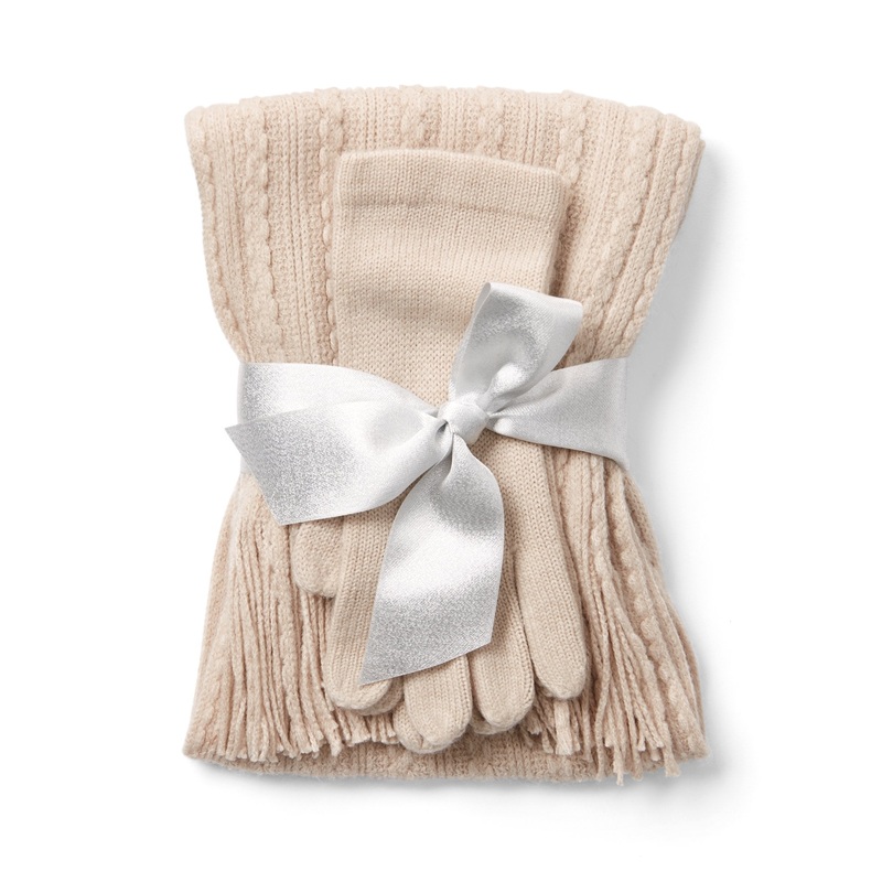 2-Piece Cable-Knit Scarf & Glove Set NATURAL – HONEY BEIGE HTR