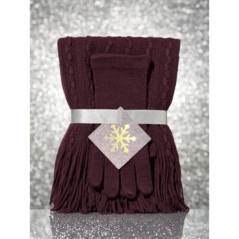 2-Piece Cable-Knit Scarf & Gloves Gift Set PURPLE – TRUE BURGUNDY