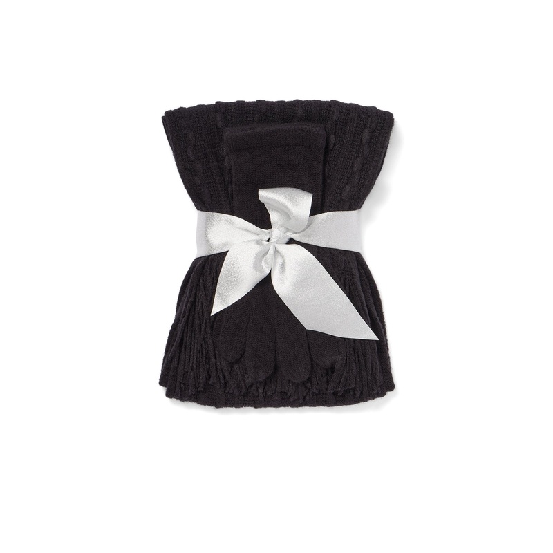 2-Piece Cable-Knit Scarf & Gloves Set BLACK – BLACK