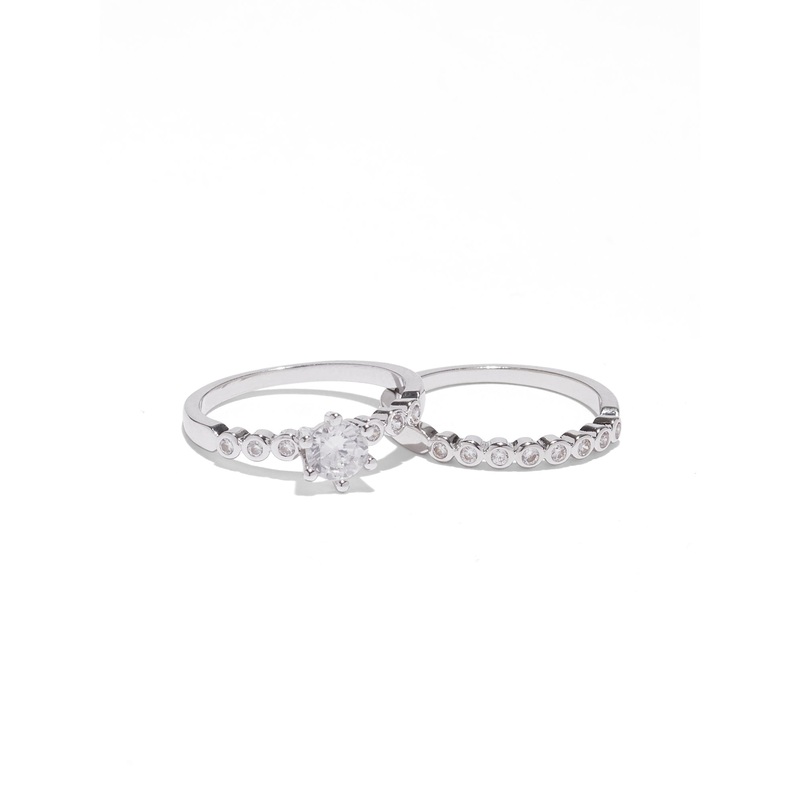 2-Piece Cubic Zirconia Silvertone Ring Set GREY – SILVER