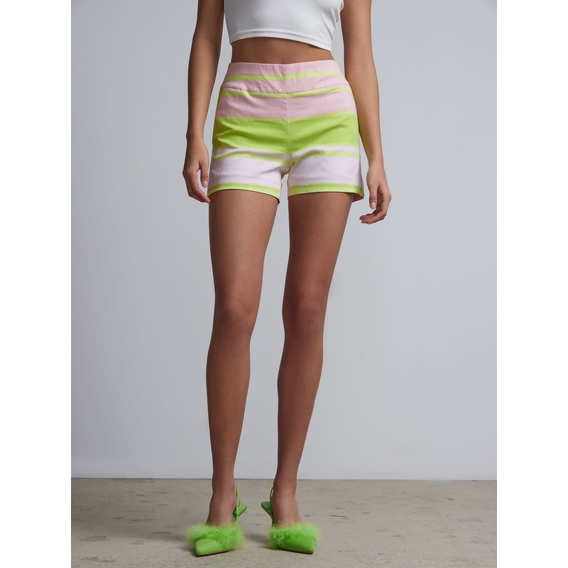 Whitney High-Waisted Pull-On 4-Inch Short – Lime Stripe GREEN – LOOKING FOR LIME