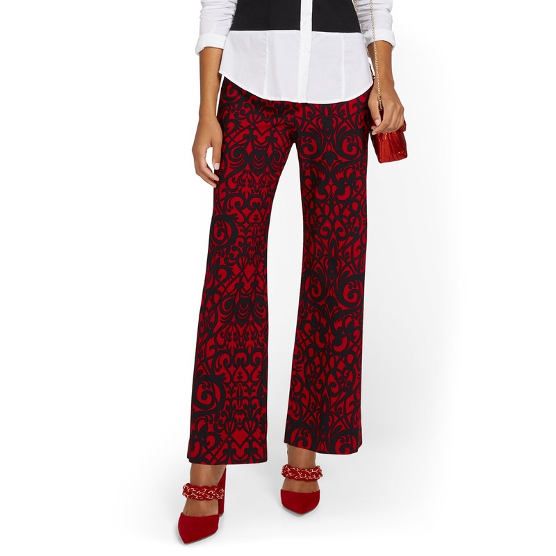 Whitney High-Waisted Pull-On Printed Wide-Leg Pant RED – COCO RED