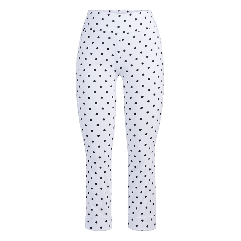 Whitney High-Waisted Pull-On Capri Pant – Dot Print WHITE – PAPER WHITE