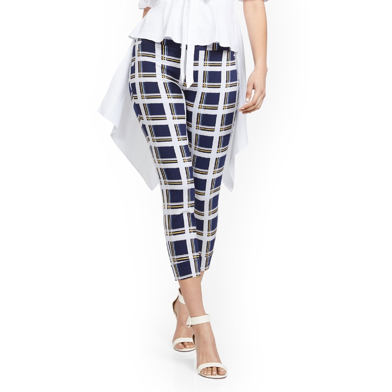 Whitney High-Waisted Pull-On Capri Pant – Plaid BLUE – GRAND SAPPHIRE