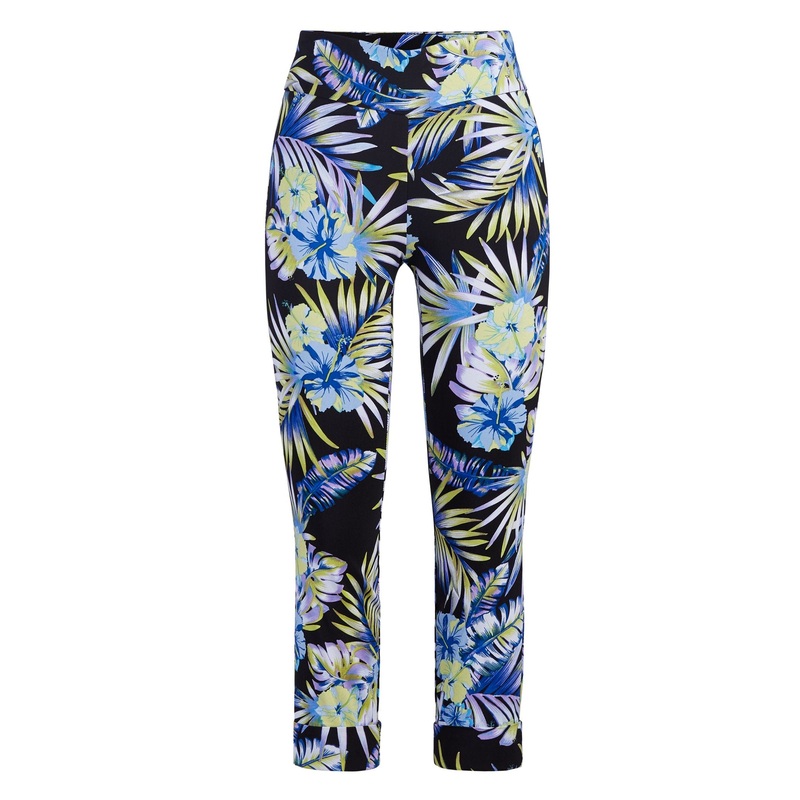 Whitney High-Waisted Pull-On Capri Pant – Tropical Print BLACK – BLACK