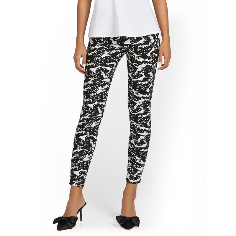 Whitney High-Waisted Pull-On Slim-Leg Pant – Butterfly-Print BLACK – BLACK/WHITE