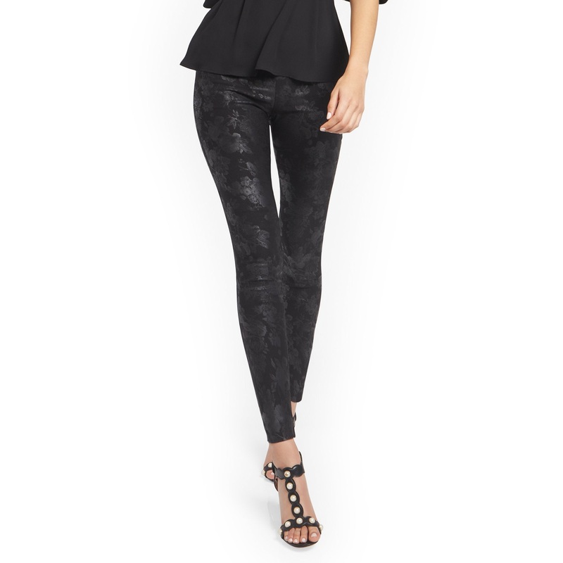 Whitney High-Waisted Pull-On Slim-Leg Pant – Floral BLACK – BLACK