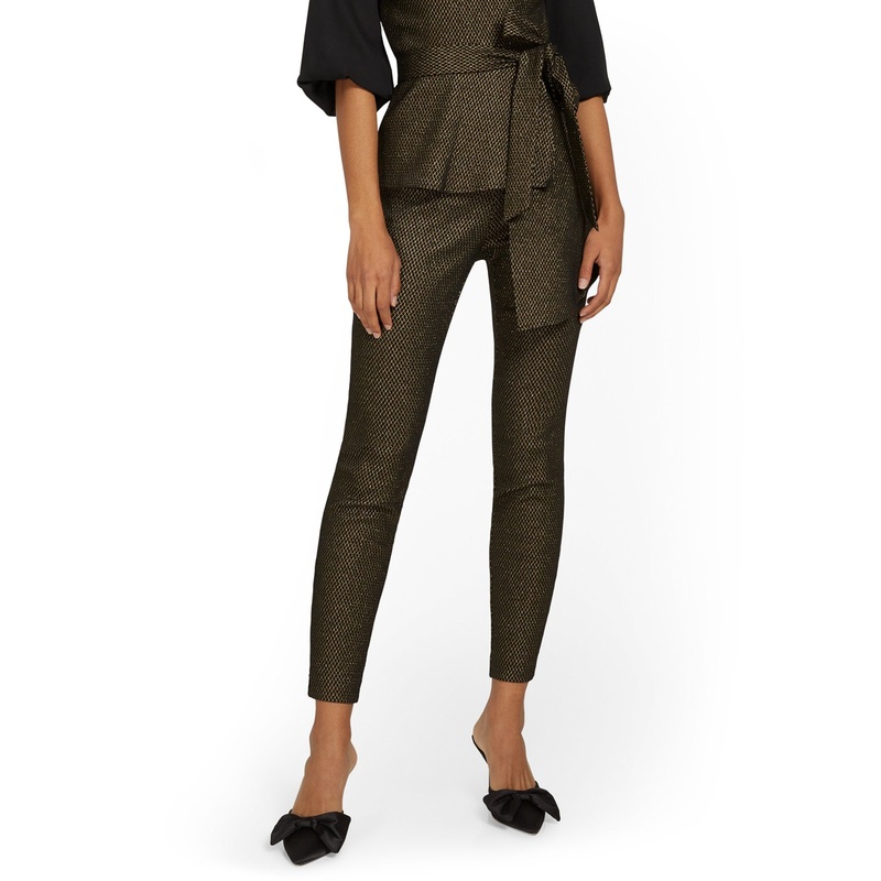 Whitney High-Waisted Pull-On Slim-Leg Pant – Metallic BLACK – BLACK