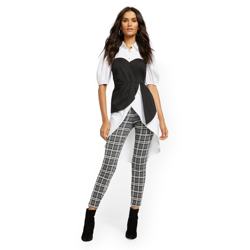 Whitney High-Waisted Pull-On Slim-Leg Pant – Plaid BLACK – BLACK/WHITE