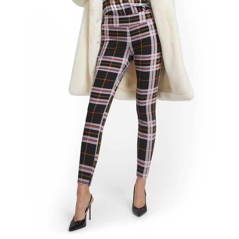 Whitney High-Waisted Pull-On Slim-Leg Pant – Plaid BLACK – BLACK