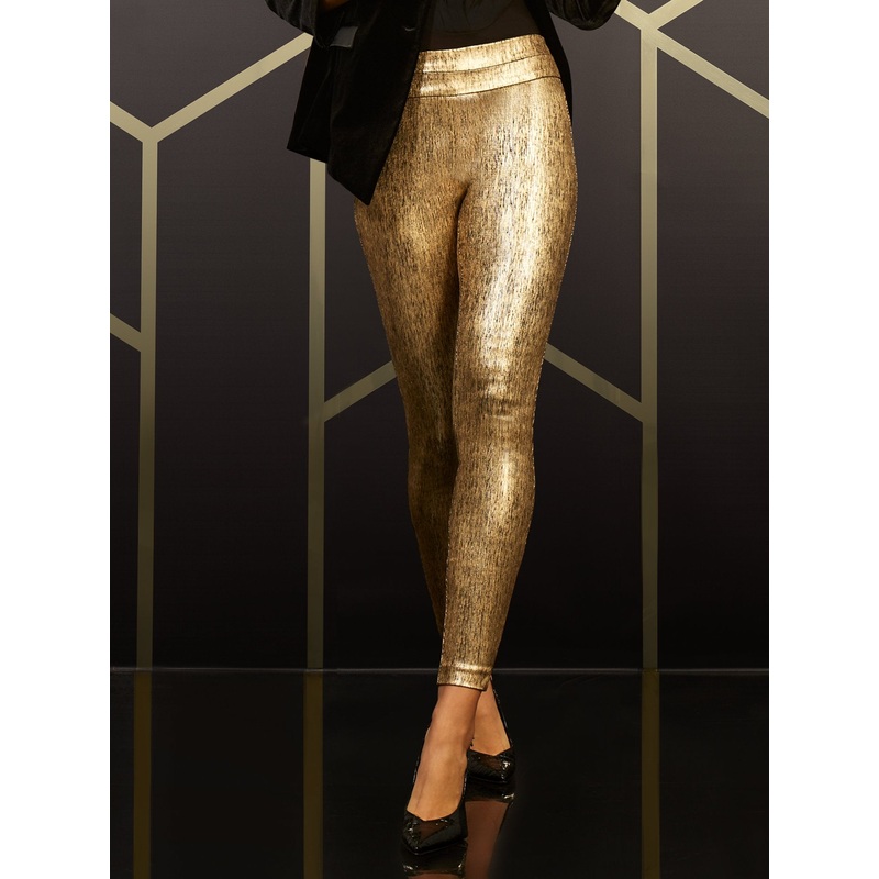 Whitney High-Waisted Pull-On Slim-Leg Pant – Metallic Gold YELLOW – GOLD