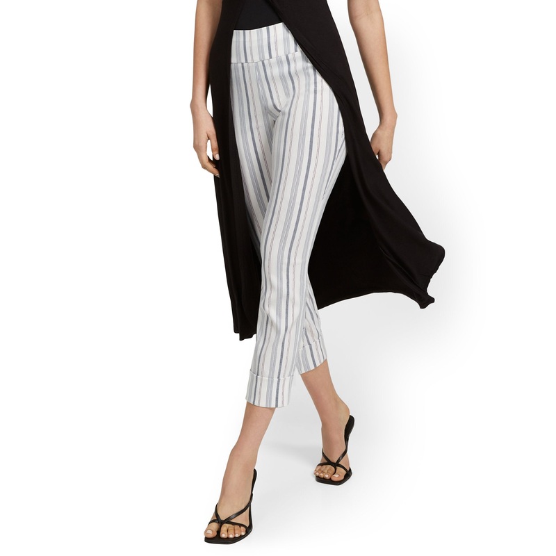 Whitney High-Waisted Pull-On Slim-Leg Capri Pant – Stripe WHITE – OPTIC WHITE