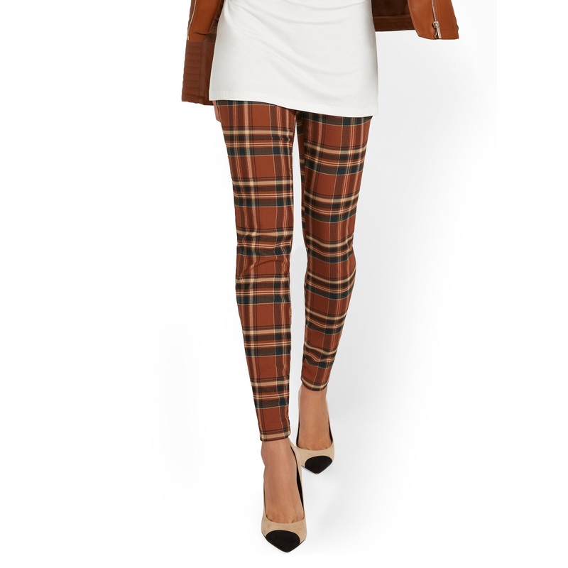 Whitney High-Waisted Pull-On Slim-Leg Pant – Plaid BROWN – BROWN