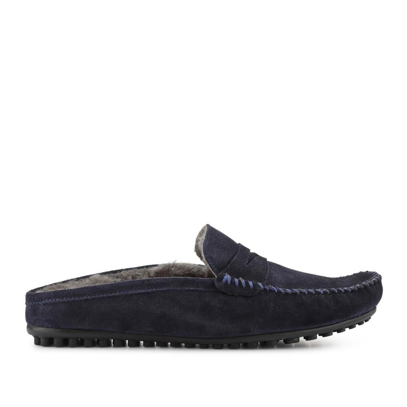 Zeke Leather Full Slippers – ZEKE / 328 015 – Navy Suede Charcoal