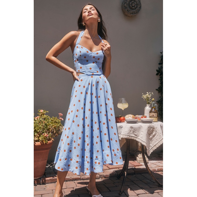 Janie Polka Dot Midi Skirt Blue rust polkadot