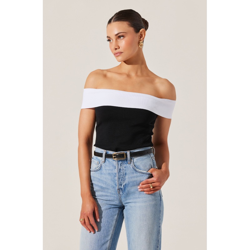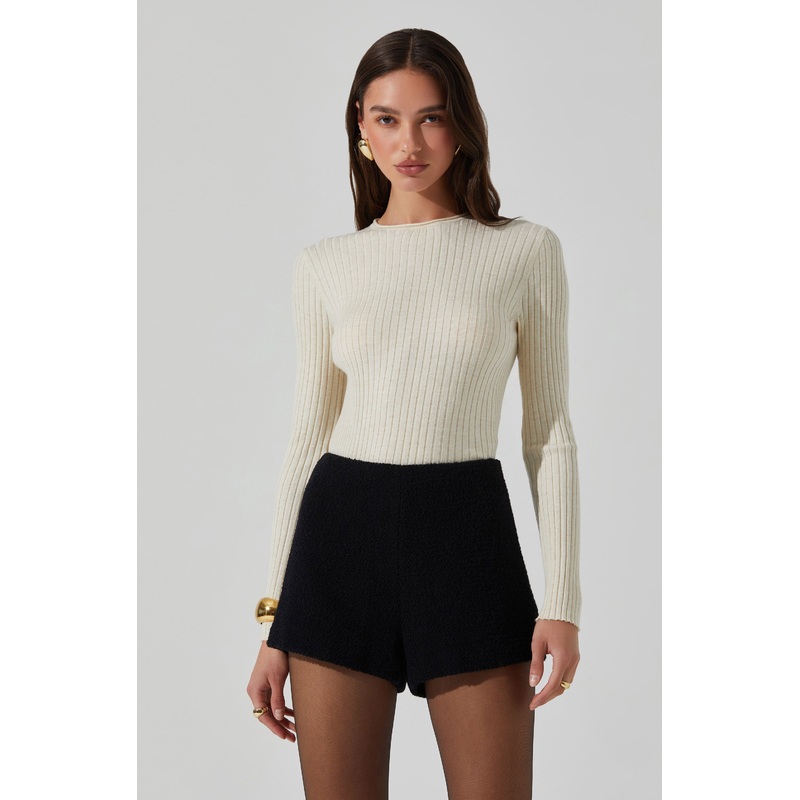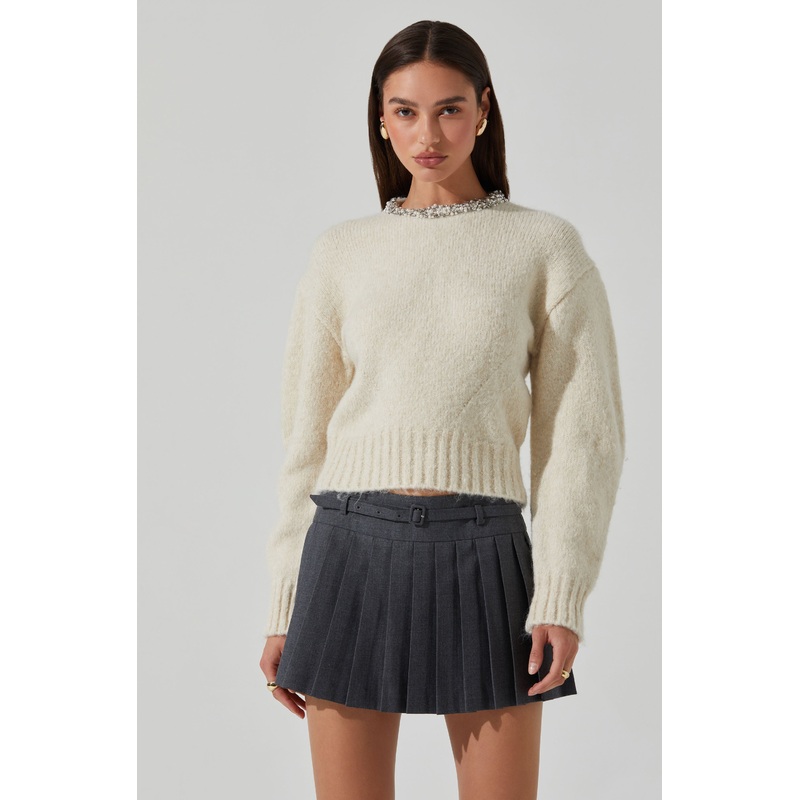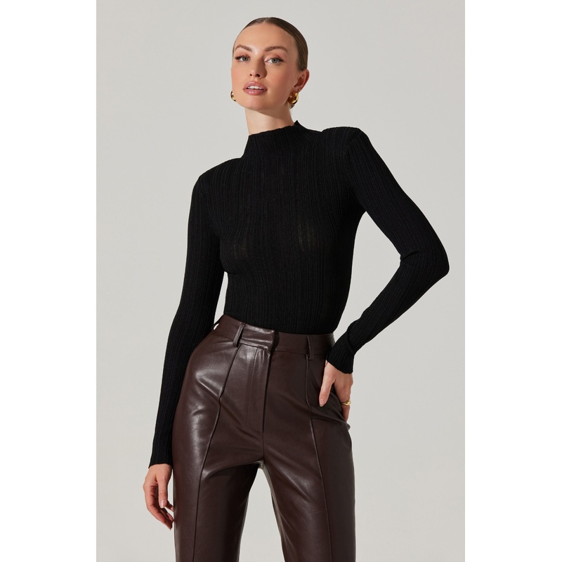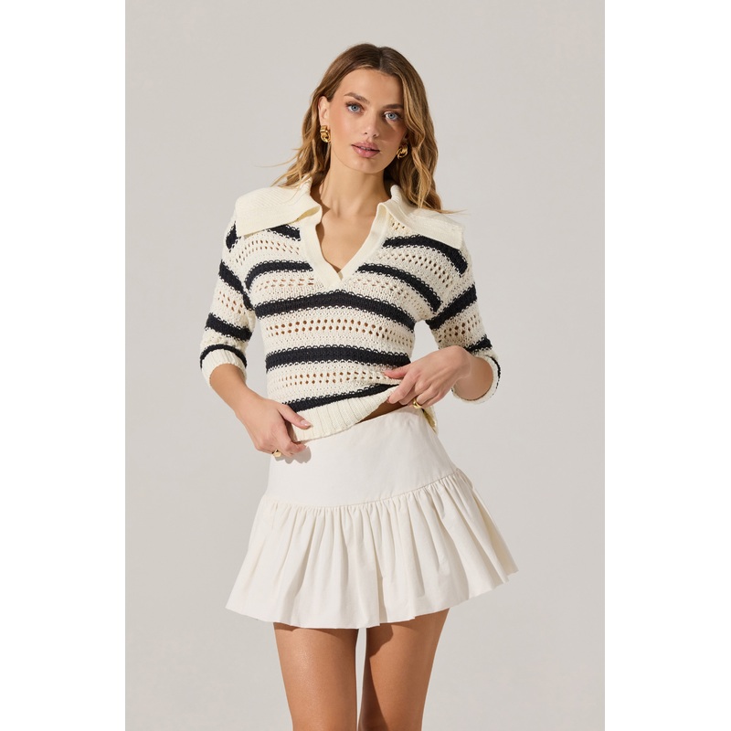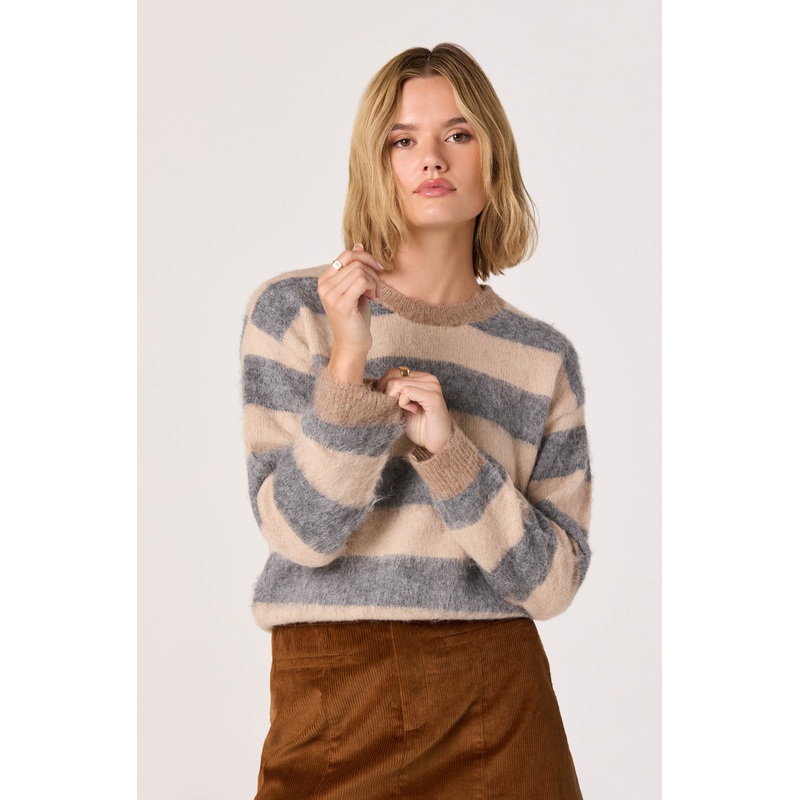 Sophea Striped Mock Neck Sweater Charcoal cream