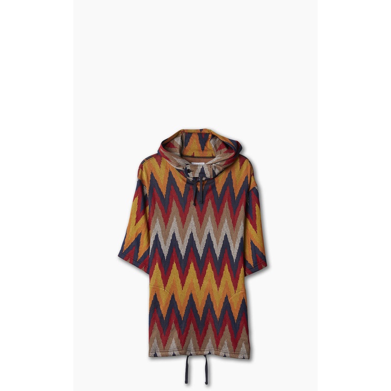 Engineered Garments Short Sleeve Hoody Ikat Knit Red/Navy