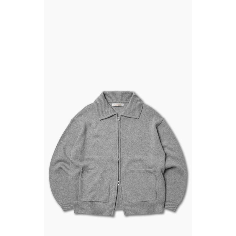 FrizmWORKS Wool Collar Zip Up Knit Cardigan Grey