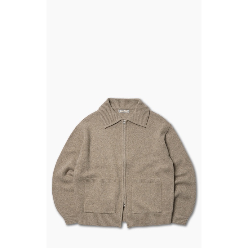 FrizmWORKS Wool Collar Zip Up Knit Cardigan Oatmeal